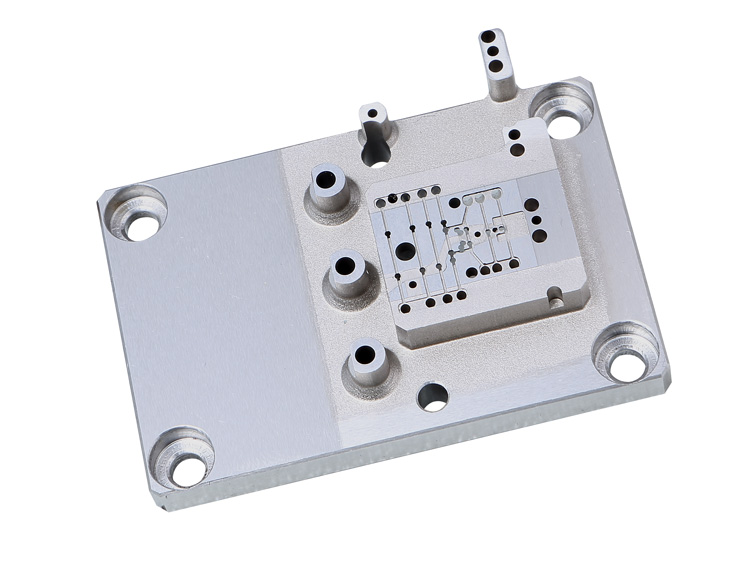 ![]() 产品名:缓冲片冲头 			材料:CD650 & ASP23, Torlon 主要工艺:电火花、磨床、抛光 技术难点: --外形与D型冲孔模轮廓度0.003mm; --内孔与外圆同轴度公差+/-0.0015mm; -- 组合设计,头部可互换 --外观严格:100倍显微镜下检查D型斜面刀口锐边不可崩缺。  | 							![]() 1.产品名称:托盘单元 			2.材料:AL6061 3.主要工艺:CNC 4.技术难点:凸台外形尺寸±0.02mm,八个小孔公差+0.01mm,位置度±0.01mm  | 							![]() 1.产品名称:三通 			2.材料: 7075-T6 3.主要工艺: 车床, CNC 4.技术难点:各外圆全跳动0.01,各端面到轴线距离±0.005mm  |