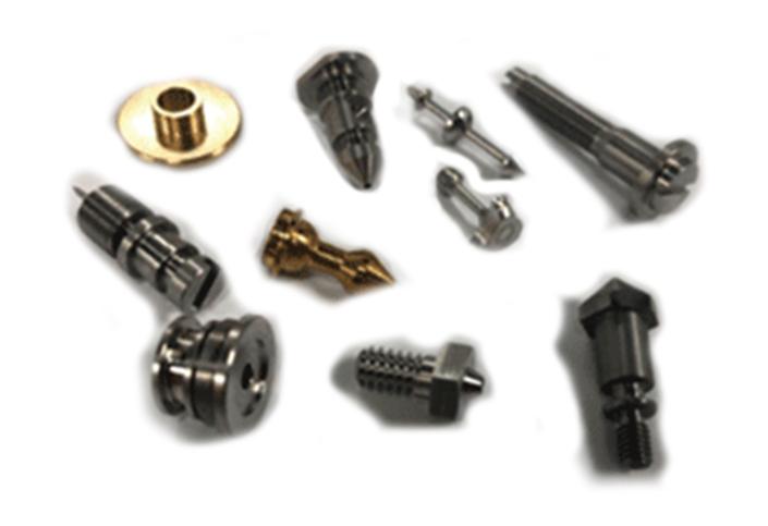 ![]() 产品名:E-驱动架 			材料:钛合金 主要工艺:CNC、平磨、慢走丝 技术难点: --多层薄片架变形控制难度大,平面度0.01mm; -- 各层薄片架位置精度±0.015mm;  | 							![]() 产品名: 销钉/阀芯螺丝类小零件 			材 料:不锈钢、铝/铜合金 主要工艺:自动车床 技术难点: --多轴自动车床批量加工,精度0.005mm  | 							  产品名:冲压模-冲头 			材料:CD650钨钢 主要工艺:平磨、慢走丝、抛光 技术难点: --尺寸及形位公差精度0.003mm; --冲头成型部位抛光Ra0.05  |