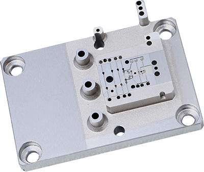 产品名:HGA弹性臂压块 			材 料:440C或CD650钨钢 主要工艺:电火花,慢走丝、平磨 技术难点: --零件尺寸小而几何尺寸/形位公差精度极精; --所有精孔尺寸/位置精度0.003mm由慢走丝/镗磨加工; --顶部十余处电火花加工异型浅槽轮廓/深度公差0.003mm --整体金刚石涂层  | 							  	产品名:PZT载板 			材料: Al 6061-T6 主要工艺:CNC 技术难点: --所有120控制孔径公差0.005mm以及位置度公差0.005mm. --硬质黑色氧化处理后保证整体平面度0.02mm以内。  | 							![]() 产品名:集成安装盒 			材料:AL6061 主要工艺:CNC,硬黑氧化+化学转化膜 技术难点: -- CNC多轴加工;六面平面度、平行度、垂直度全部0.005~0.01mm; --三面精孔位置度0.01以内; --近300处尺寸由CNC多次/多面加工/CMM三坐标测量确保。  |